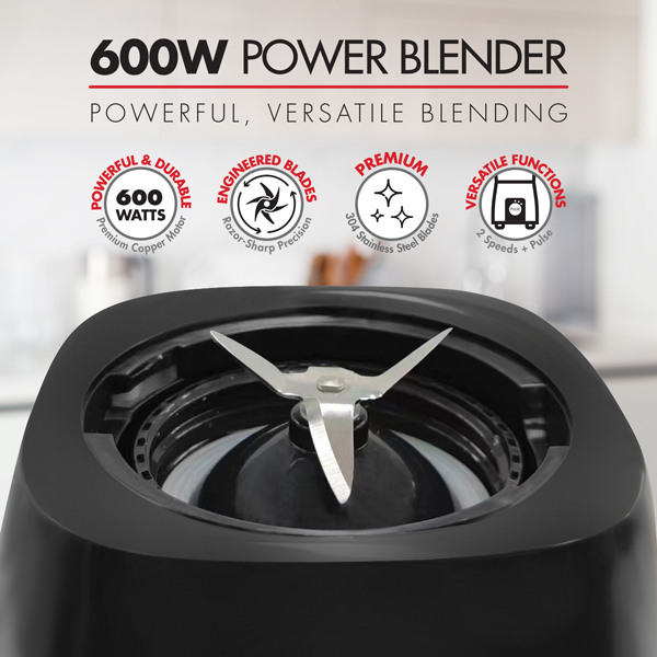The capability & efficiency to craft delectable smoothies, shakes, salsas, dips, soups, purées, crushed ice & beyond! Powerful performance packed with an impressive 600w durable copper motor & equipped with tornado-tech cyclonic action to push ingredients back down to the blades for perfect results. Family-sized value preparing family-sized servings has never been easier, with the large 1.5l premium glass jug & the convenient, no-mess feed lid, making it easy to add extra ingredients while blending. Precision-engineered 4 precision-engineered, stainless steel blades ensure more effective & efficient blending, delivering results in seconds. Safe & convenient 2 speeds & pulse mode for added control & precision so that you can create perfect textures & blends. Components are also BPA-free for ultimate peace of mind. A refined fusion of power, efficiency & value the Bennett Read® 600w Power Blender boasts a stylish blend of power & efficiency to your home without breaking the bank. This versatile kitchen appliance effortlessly blends, chops, purées & pulverizes for quick, effective results. Extended warranty your Bennett Read® 600w Power Blender comes standard with a 1 year warranty. Register your warranty online at www.bennettread.co.za/warranty & we’ll extend it to a full 2 years.