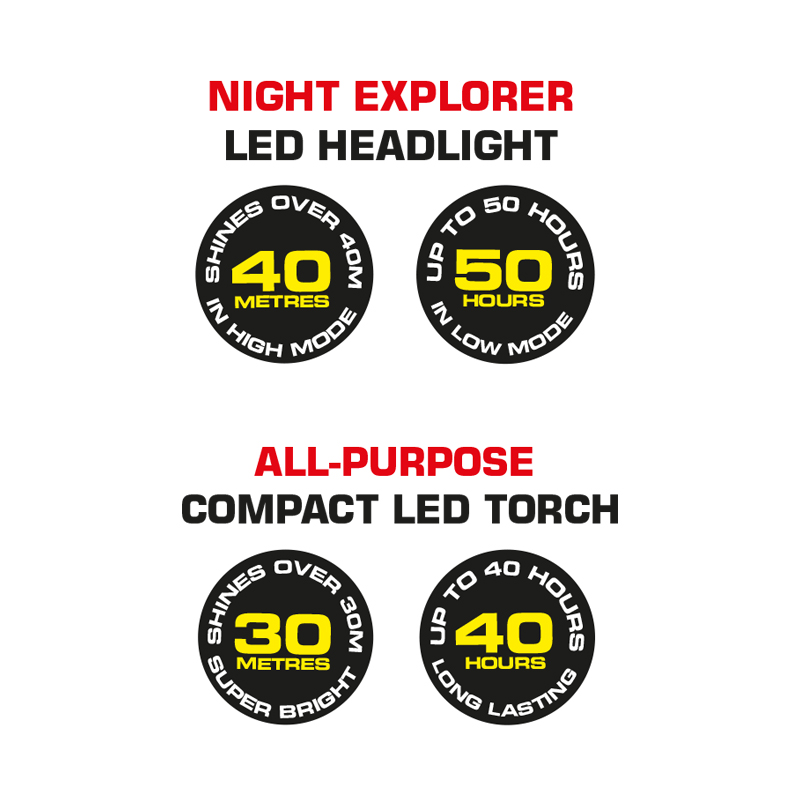 Whether you’re repairing something in the dark or on a nighttime adventure, The LED Headlight Torch Combo Pack has you covered!
