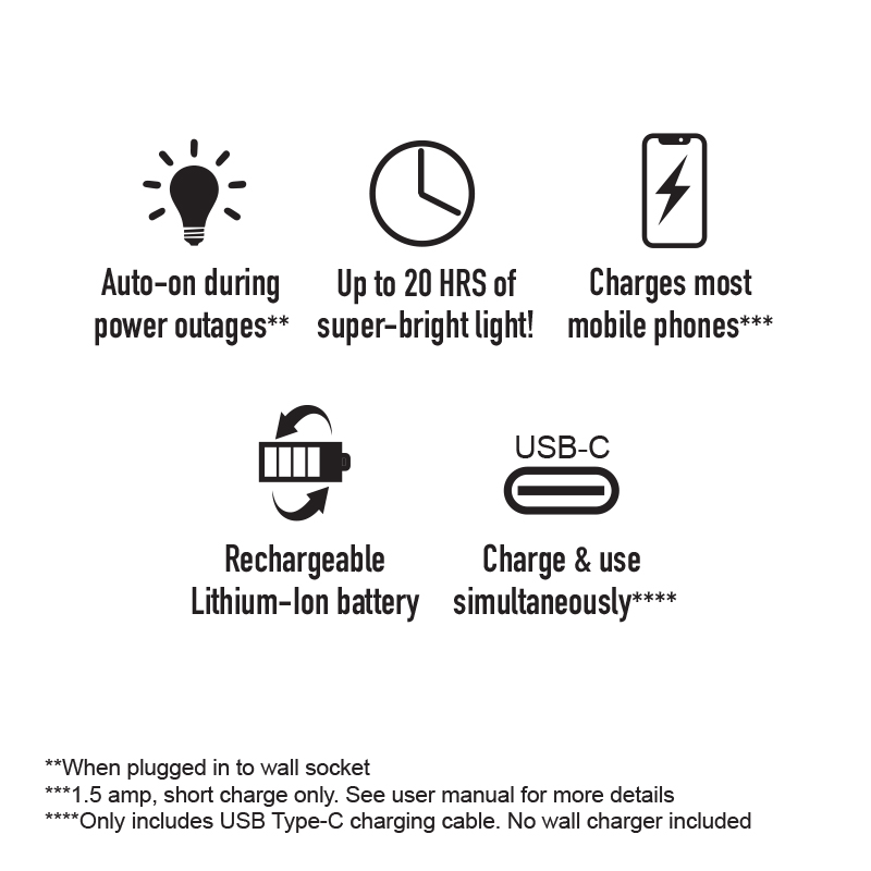 Perfect for power failures, the ultra-bright Magneto Lithium-Ion LED Lantern is the most reliable emergency light available, switching on automatically when the power goes out. With an impressive shine time of up to 20 hours of super-bright light, the 10 000mAh battery is one of its shining features. The Magneto Lithium LED Lantern has been designed with a USB Type C port, allowing you to charge and use it simultaneously. And as an added bonus, it can be used to charge most mobile phones. Shop this quality lithium light and enjoy shipping straight to your door – nationwide!