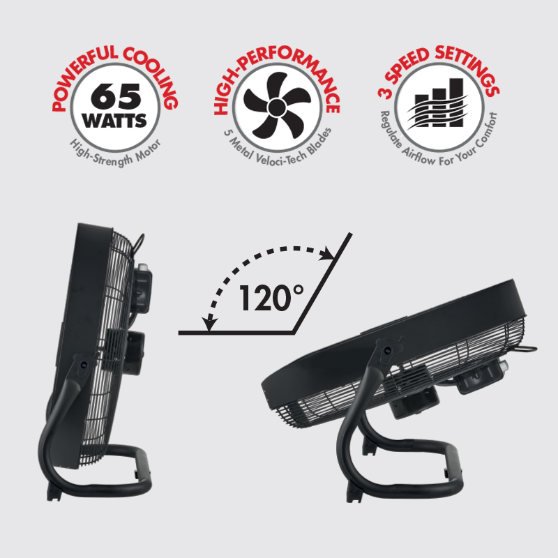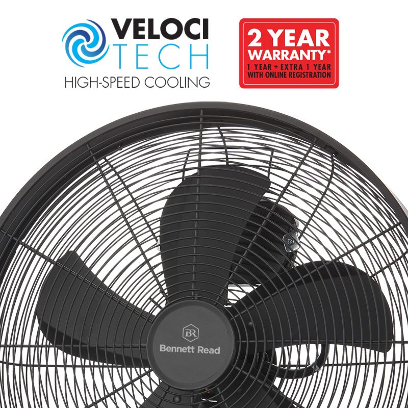This floor fan is a swift, sturdy, industrial-strength solution to your cooling needs. With a stylish, modern design, you get aesthetics and performance thanks to the high-velocity tech. You can expect a high-quality 65W copper motor and 5 high-performance metal blades that provide an instant, steady blast of cool air. This rechargeable floor fan is adjustable, stable, and boasts the convenience of a 120° vertically adjustable fan head, directing the flow of cool air. It also has 3 speed settings to set the velocity to your liking. Stylish and safe with an eye-catching spiral fan guard, this low-profile U-shaped base easily fits in as a stylish addition to any room. The Bennett Read 45cm metal rechargeable fan comes standard with a 1-year warranty. Register your warranty online and we’ll extend it to a full 2 years!