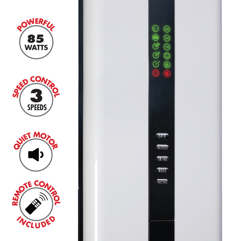 - Multi-directional, atomized misting fan & humidifier with 1.5L water tank
