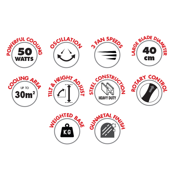- Large 40cm blade diameter