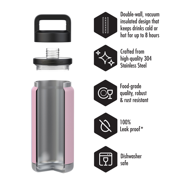 *The leak-proof design of our double-wall, vacuum insulated flasks is intended to prevent spills under normal use conditions. Please ensure the lid is securely fastened to maintain leak-proof performance.