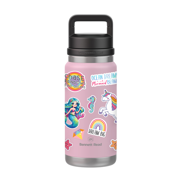 Dive into a world of magic and whimsy with our Mermaids & Unicorns sticker set. Featuring glittery mermaids, prancing unicorns, and enchanted seashells, this pack is perfect for those who love a touch of fantasy and sparkle on their Explorer Flask.