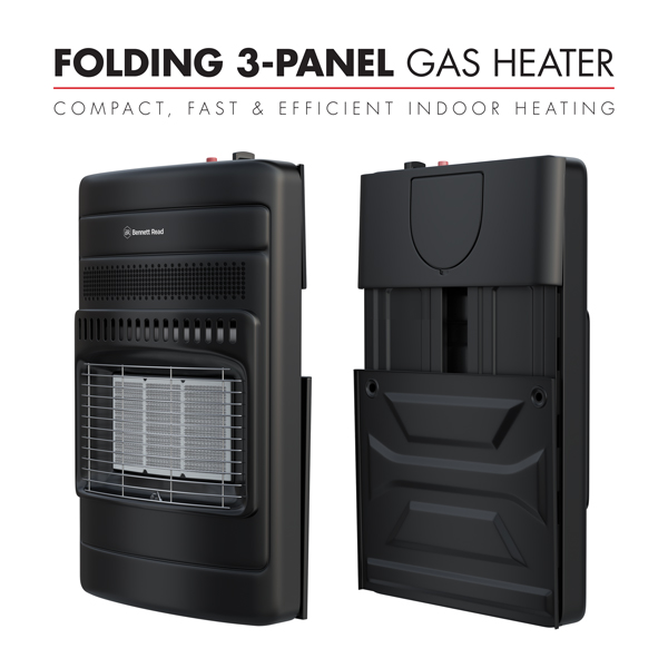 The ultimate in fast, safe & affordable gas heating. Keep warm & save money on electricity with the fast, efficient & effective Bennett Read® Folding 3-Panel Gas Heater. With Therma- Tech room heating technology for quick & comfy indoor heating, plus built-in tip-over safety switch & oxygen depletion sensor for ultimate peace of mind. Affordable & energy efficient. The cost-saving folding 3-panel gas heater is designed to provide efficient room-filling warmth, even during power cuts! Fast & effective. The fast-heating infrared will ensure that your room heats up quickly & provides the perfect desired temperature in a matter of minutes. Extended warranty. Your Bennett Read® Folding 3-Panel Gas Heater comes standard with a 1 year warranty. Register your warranty online at www.bennettread.co.za/warranty & we’ll extend it to a full 2 years.