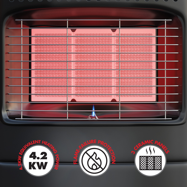 - 3 ceramic panels with 3 heat settings