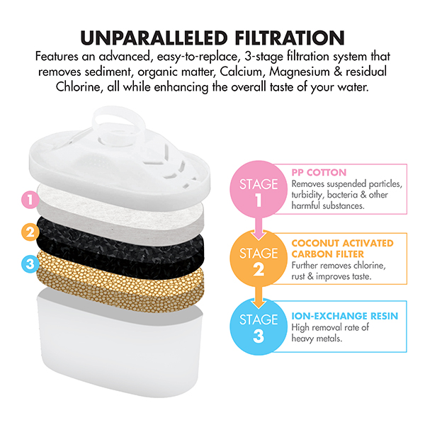 Effortlessly purify & enhance your family’s drinking water. Unparalleled filtration. Features an advanced 3-stage filtration system that removes sediment, organic matter, calcium, magnesium & residual chlorine, all while enhancing the overall taste of your water. Long-lasting performance. Designed to purify up to 150 litres of water* (600+ cup capacity), this filter cartridge provides up to two months of clean water, reducing the need for frequent replacements. Ultimate convenience. Easy to replace and maintain, ensuring continuous access to clean drinking water. Warranty. Your Bennett Read® Water Jug Filter Replacement Cartridge comes standard with a 6 month warranty. T’s and c’s apply. Register your warranty online at www.bennettread.co.za/warranty.
