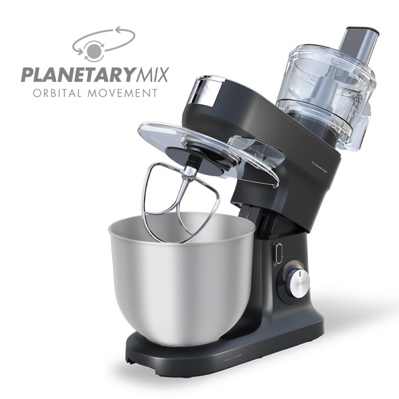 - Accessories include: 8L Stainless steel mixing bowl, Dough hook, Chef’s balloon whisk, Flat paddle beater, Flex Flat paddle beater, 1.5L** Food processor bowl, Stainless steel slicing, grating & shredding inserts, Stainless steel s-blade, Mincer, sausage & kebbe kit, Grinding mill, 1.5L Glass blender jug, Biscuit maker & Citrus juicer.