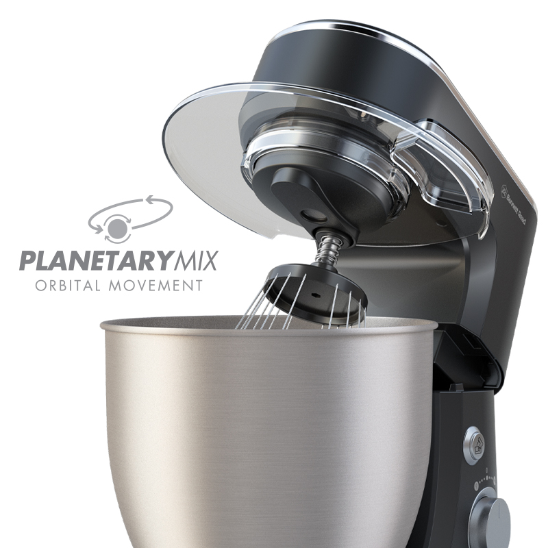 A Kitchen stand mixer that was designed to mix, knead, whip, whisk, beat, cream, fold, stir, emulsify & combine ingredients effortlessly! Produce high-quality textures alongside perfect, effortless results with the Marvello 10 from Bennett Read. Where power, creativity, versatility & capacity meet for ultimate time-saving & professional results. Speed up food prep time with 800W of electric power, Planetary Orbital Mixing Movement & variable stepless speeds that all combine to ensure smooth acceleration & complete control over delicate or heavy mixtures. The 4.7L stainless steel mixing bowl handles up to 10 eggs, 1.8L cream, 1.5kg cake batter or 900g of bread dough. Tilt-head design, detachable transparent Splashguard & convenient Feed Chute prevents splatter & mess, & allows for quick, easy & safe processing.