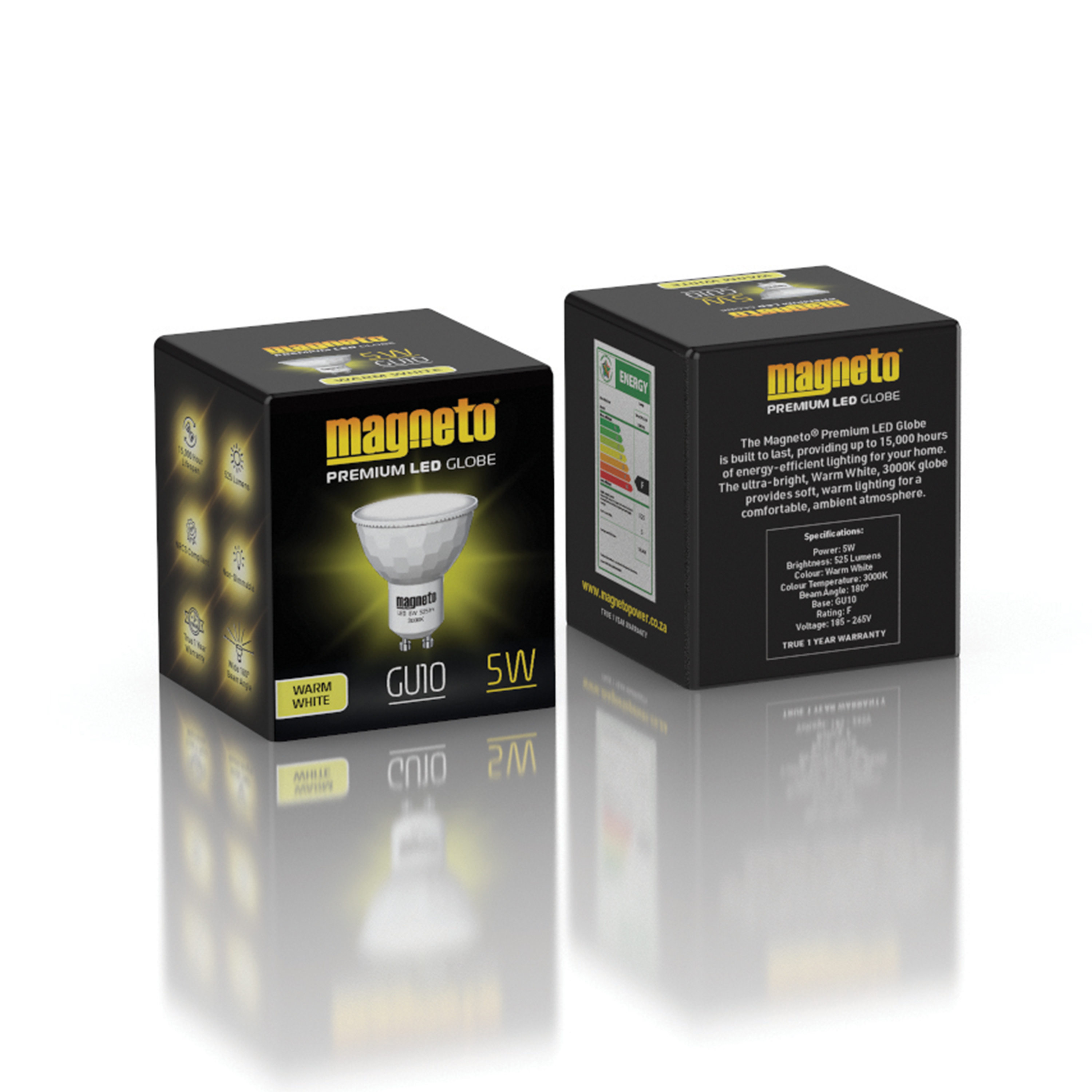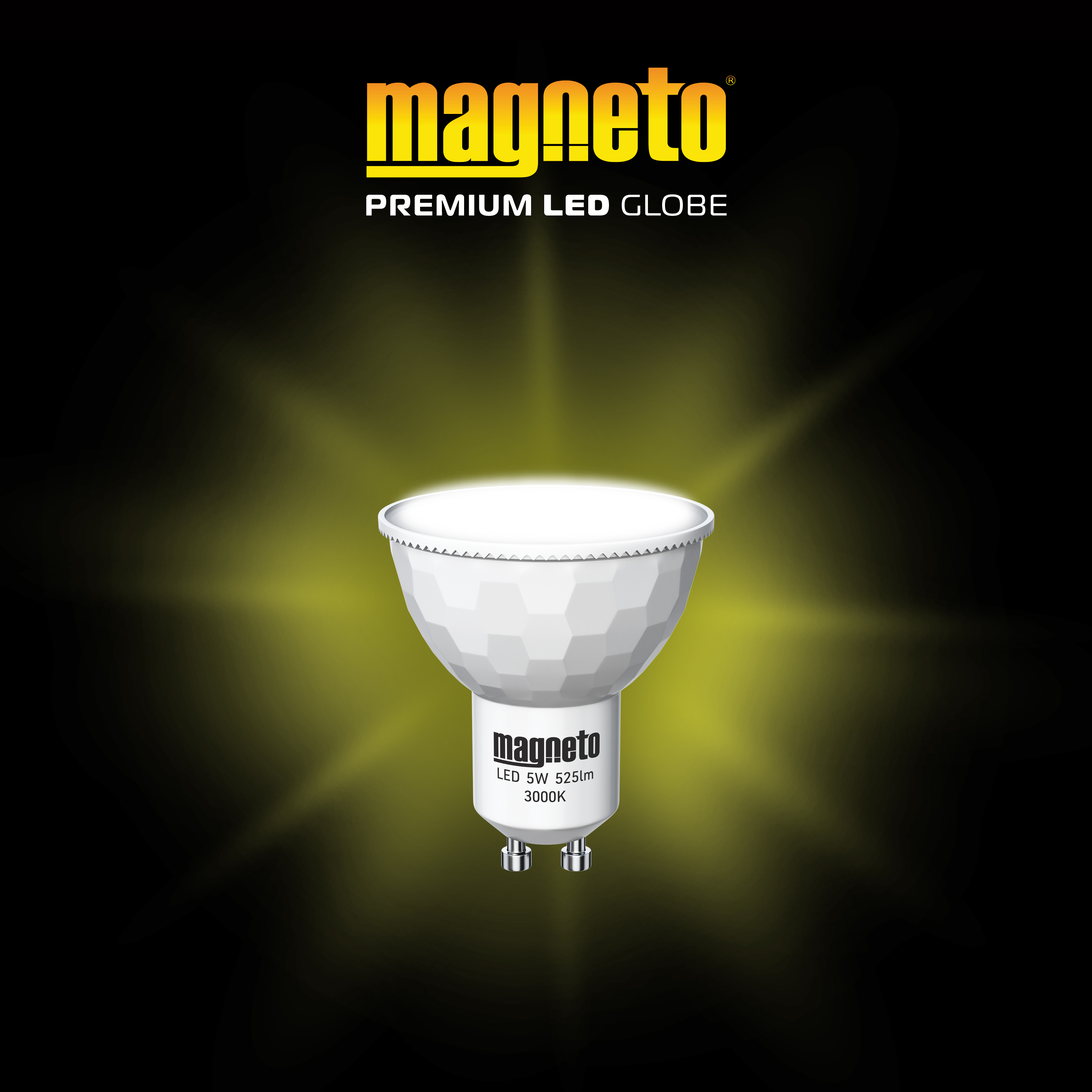 Built to last. The Magneto® Premium LED Globe is built to last, providing up to 15,000 hours of energy-efficient lighting for your home. The ultra-bright, Warm White, 3000K globe provides soft, warm lighting for a comfortable, ambient atmosphere. Ultra-bright 3000k globe. A lighting solution designed to deliver soft, warm lighting that creates a cozy and inviting atmosphere. Featuring an ultra-bright 3000K (warm white) globe. Warranty. Your Magneto® Premium LED Globe is warranted against manufacturing faults for a period of 1 (one) year. Register your warranty by visiting www.magnetopower.co.za.