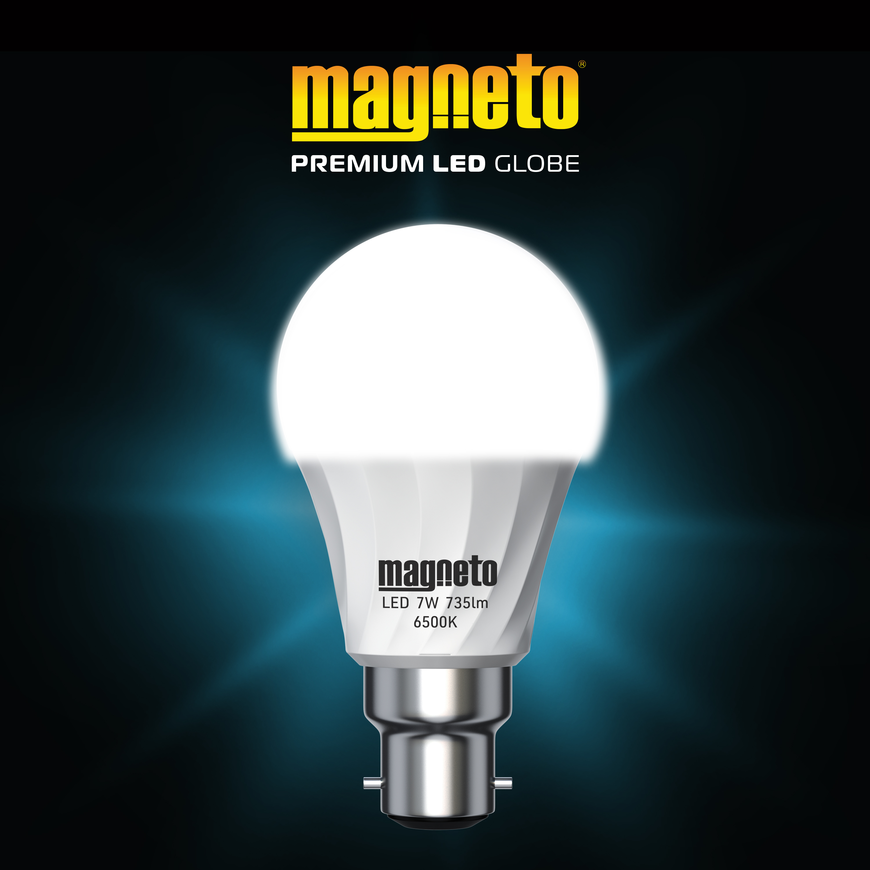 Built to last. The Magneto® Premium LED Globe is built to last, providing up to 15,000 hours of energy-efficient lighting for your home. The ultra-bright, Cool White, 6500K globe is designed for a comfortable, well-lit atmosphere. Ultra-bright 6500k globe. A lighting solution that provides the closest-to-natural midday lighting experience with an ultra-bright 6500K (daylight) globe. Warranty. Your Magneto® Premium LED Globe is warranted against manufacturing faults for a period of 1 (one) year. Register your warranty by visiting www.magnetopower.co.za.