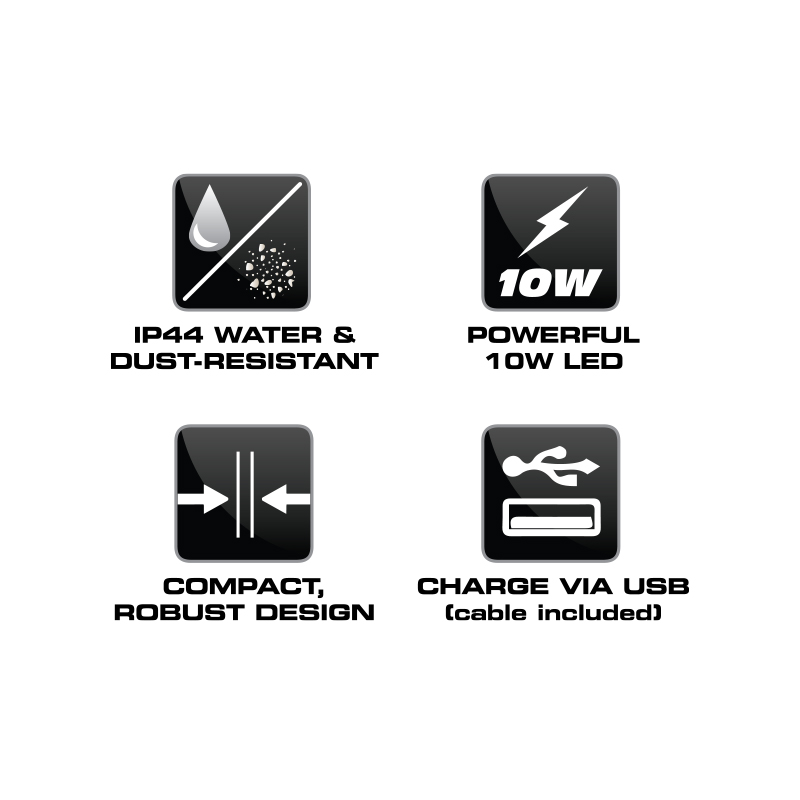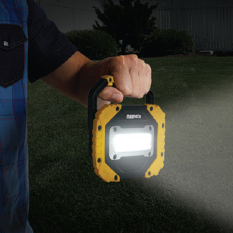 Introducing the all-new Magneto Compact Floodlight for sale. With a whopping 10 Watts of power, bright extra-wide LED beam, and a solid IP44 rated all-weather-use design, this rechargeable floodlight is a great addition to any household or outdoor space! It is water-resistant, dust-resistant, and perfect for load-shedding. The best part is that this 10W LED floodlight is lightweight and ergonomically designed to easily convert to a handy torch. Compact, robust, and dependable!
