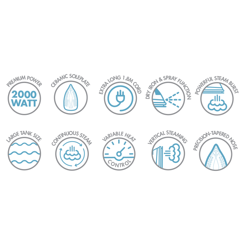 - Premium, mid-size ceramic soleplate for quick, effortless ironing