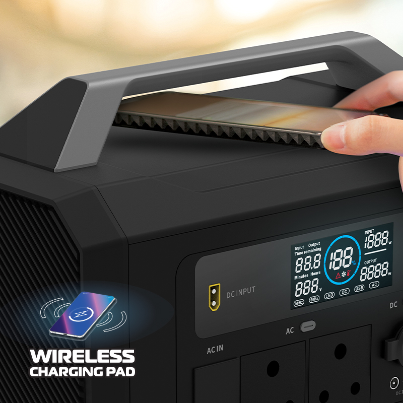 - 5V Wireless charging pad, 1 x USB-C(PD100W) Output Port, 1 x USB-C(PD30W) Output Port, 2 x USB-A(18W) Outputs, 2 x DC(13.6V Output Ports, Car Auxiliary(13.6V) Output, 2 x AC Outlets(For S.A. 3-Prong Plug), XT60 Solar Input