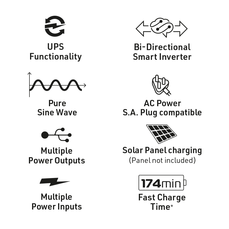 - Portable 3600W power supply that is the perfect solution for loadshedding, power failures, home offices and the outdoors!