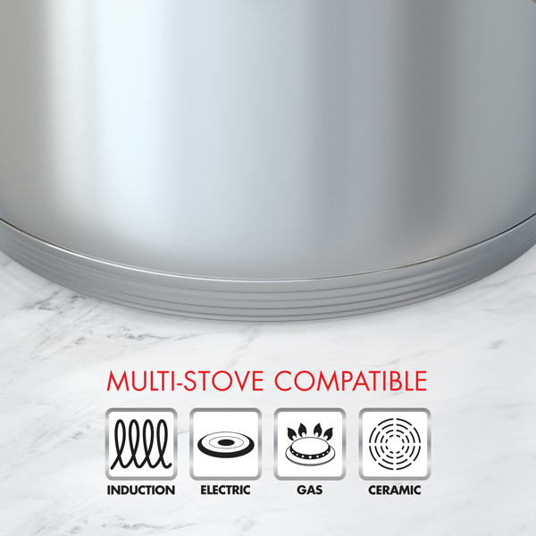 - Thick, stepped base for even-heat distribution