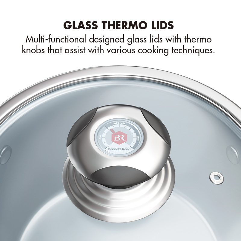 - Multi-functional, tempered glass thermo lids