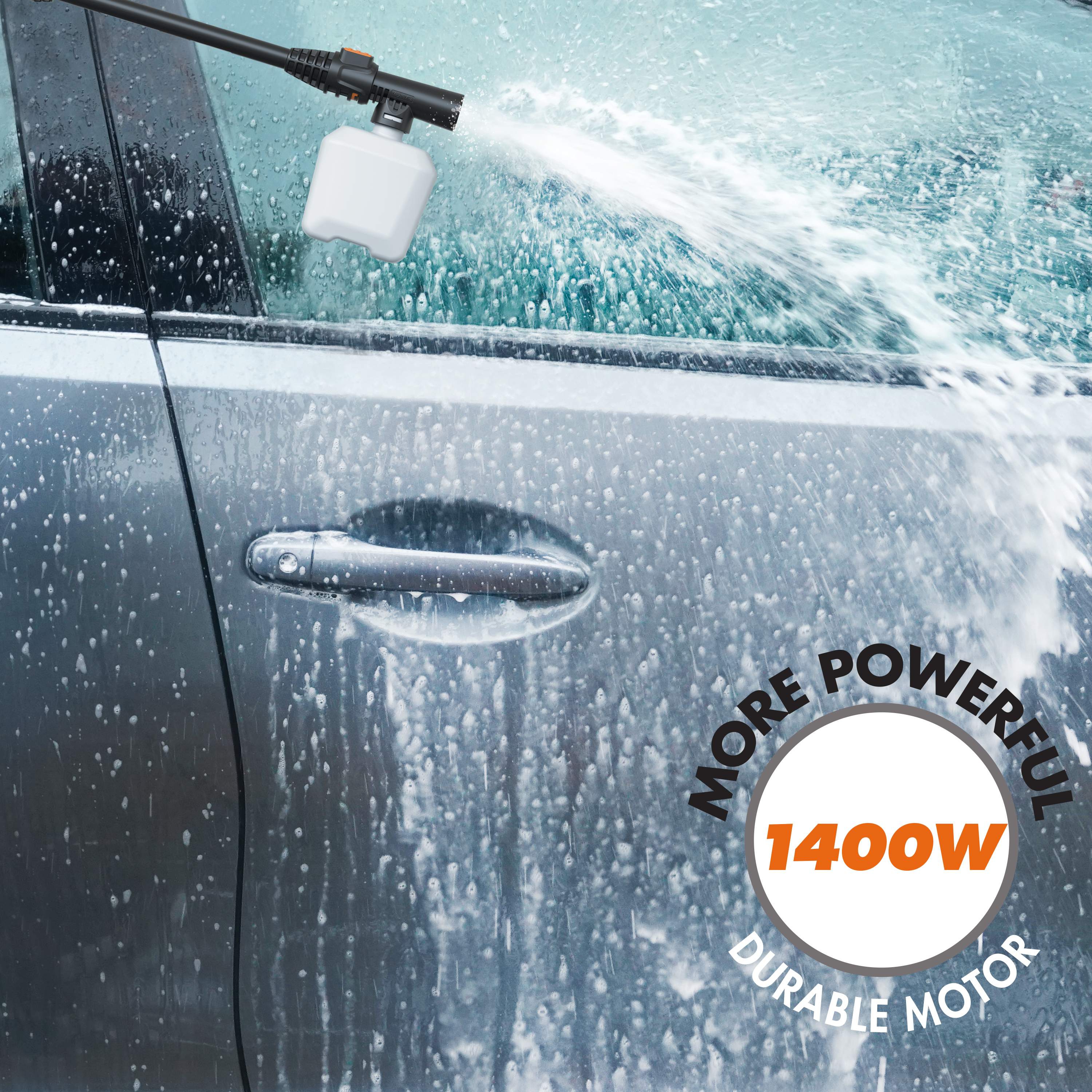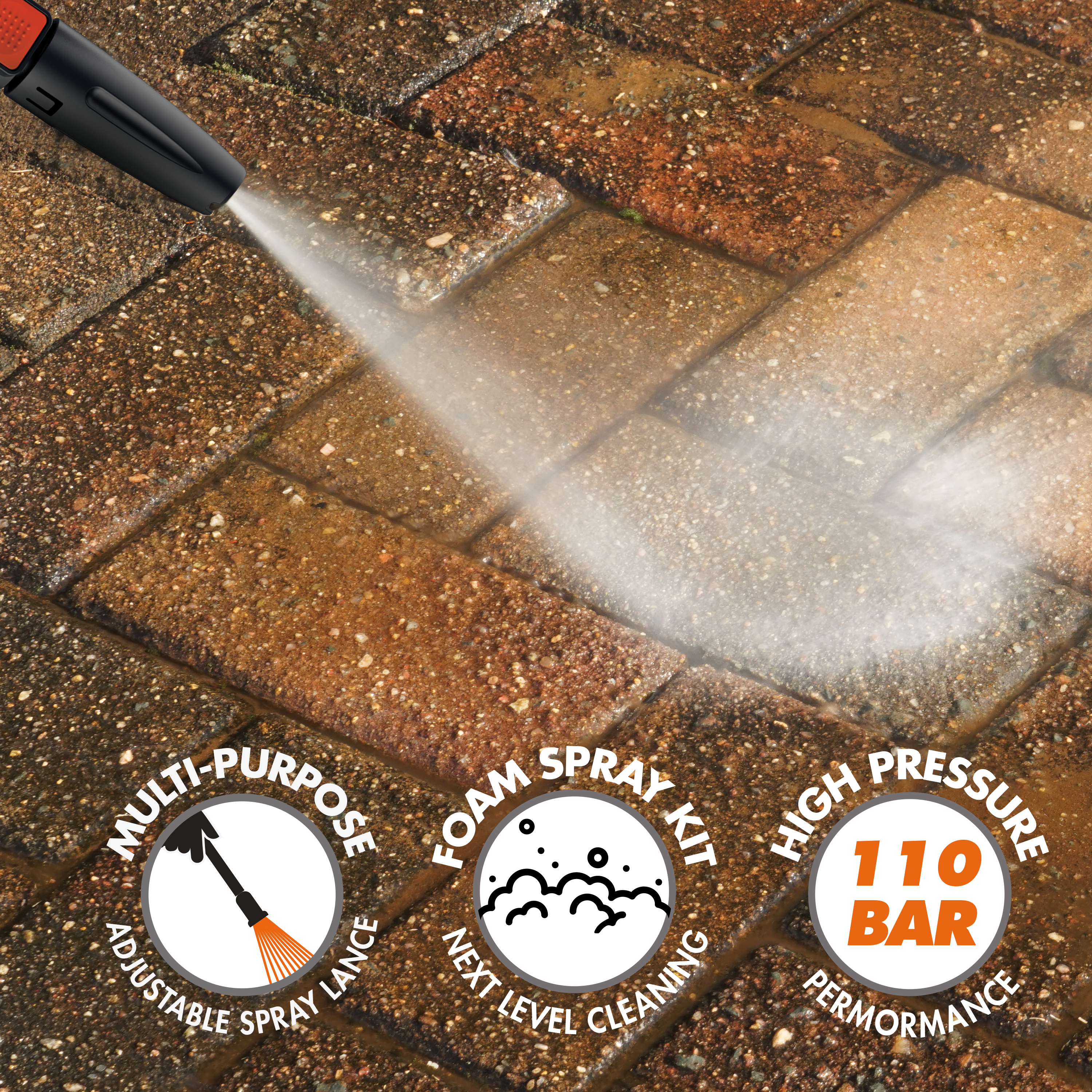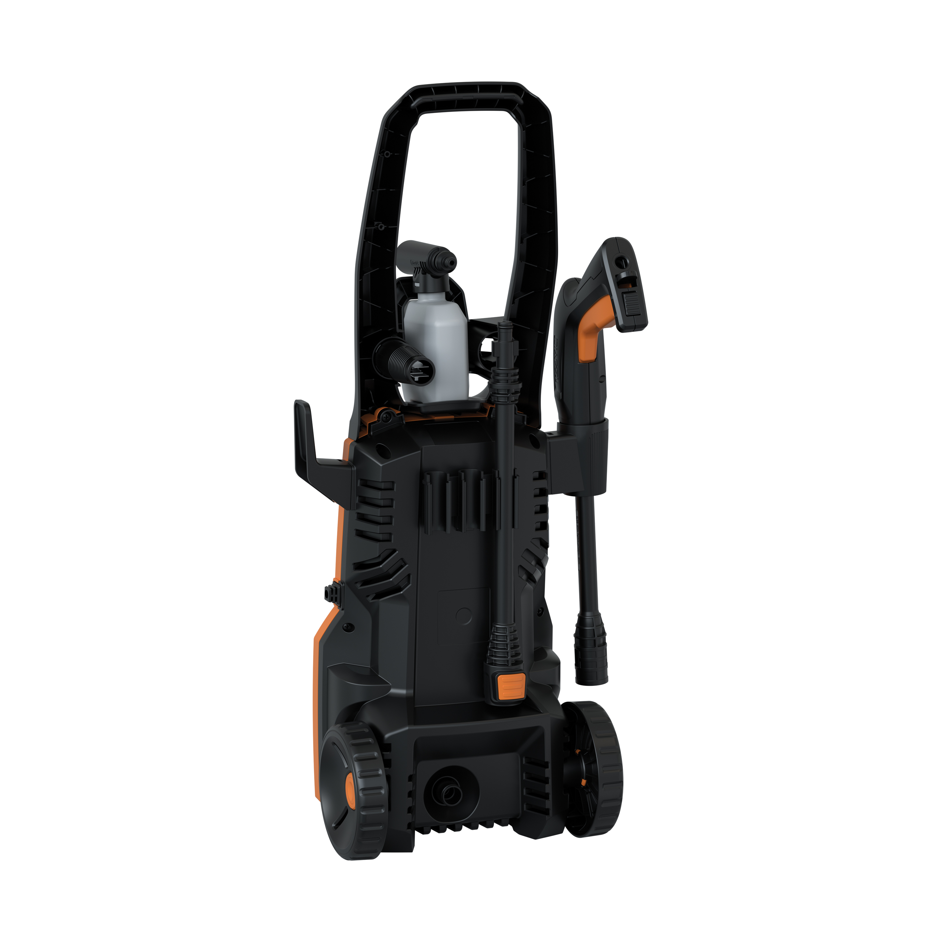 - Storage features: Onboard spray lance storage, power cord hook, detergent bottle storage