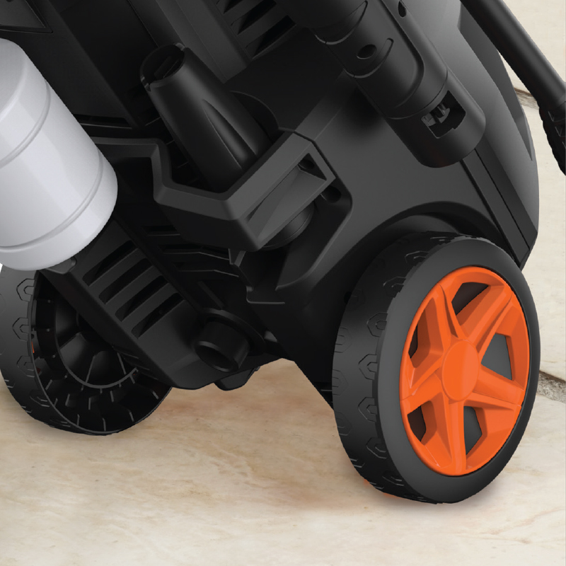 The XTR1400 Dynamic Pressure Washer provides the power & versatility to clean any outdoor surface with ease. Perform well under pressure with its powerful 1400W motor, 105 bar pressure & multi-purpose adjustable spray nozzle. Blast through the toughest dirt & stains by adjusting the nozzle to “wide spray” for gentle cleaning or “focused jet” for hard surfaces & stubborn dirt. The onboard detergent bottle can even be filled with a high-foam detergent to produce foam through the spray lance for easy & efficient one-time cleaning! Complete with rugged wheels & a quick-release handle to allow the XTR 1400 Dynamic to easily move around your home & garden adding speed & convenience to any cleaning task. Clean mildew off of tiles & patios, remove tar & oil stains from concrete driveways & even give your car a quick wash! Take on any dirt challenge with the Bennett Read XTR1400 Dynamic!