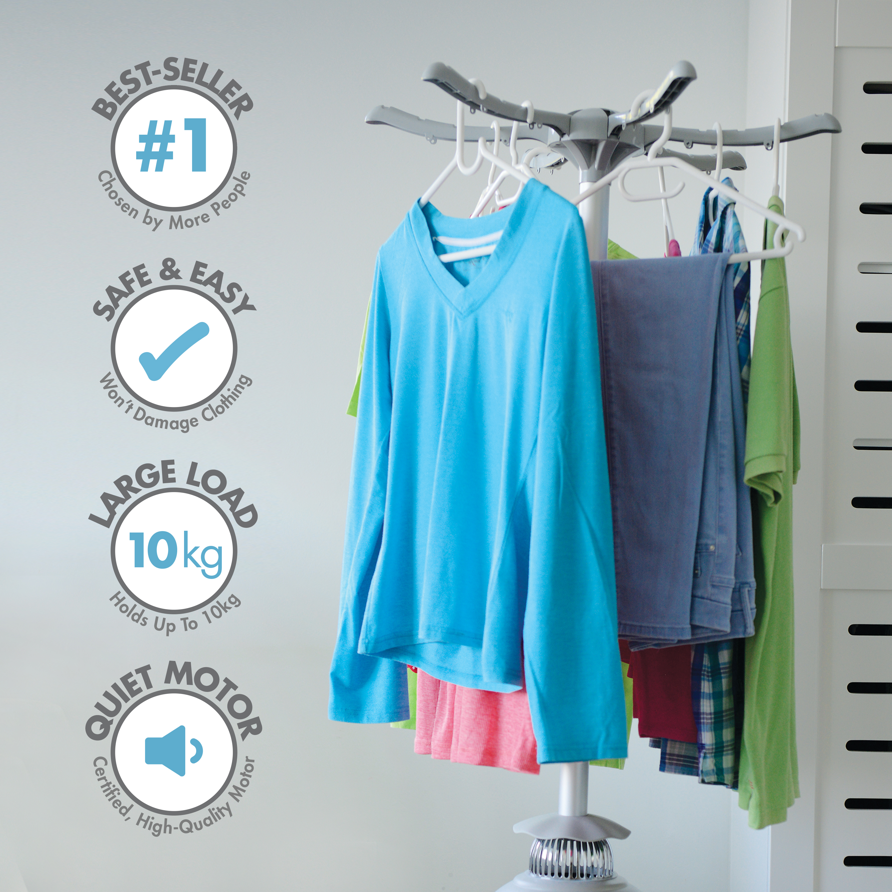 ** Depending on type & thickness of fabric & quantity of clothes in the Bennett Read 900w DriBuddi.