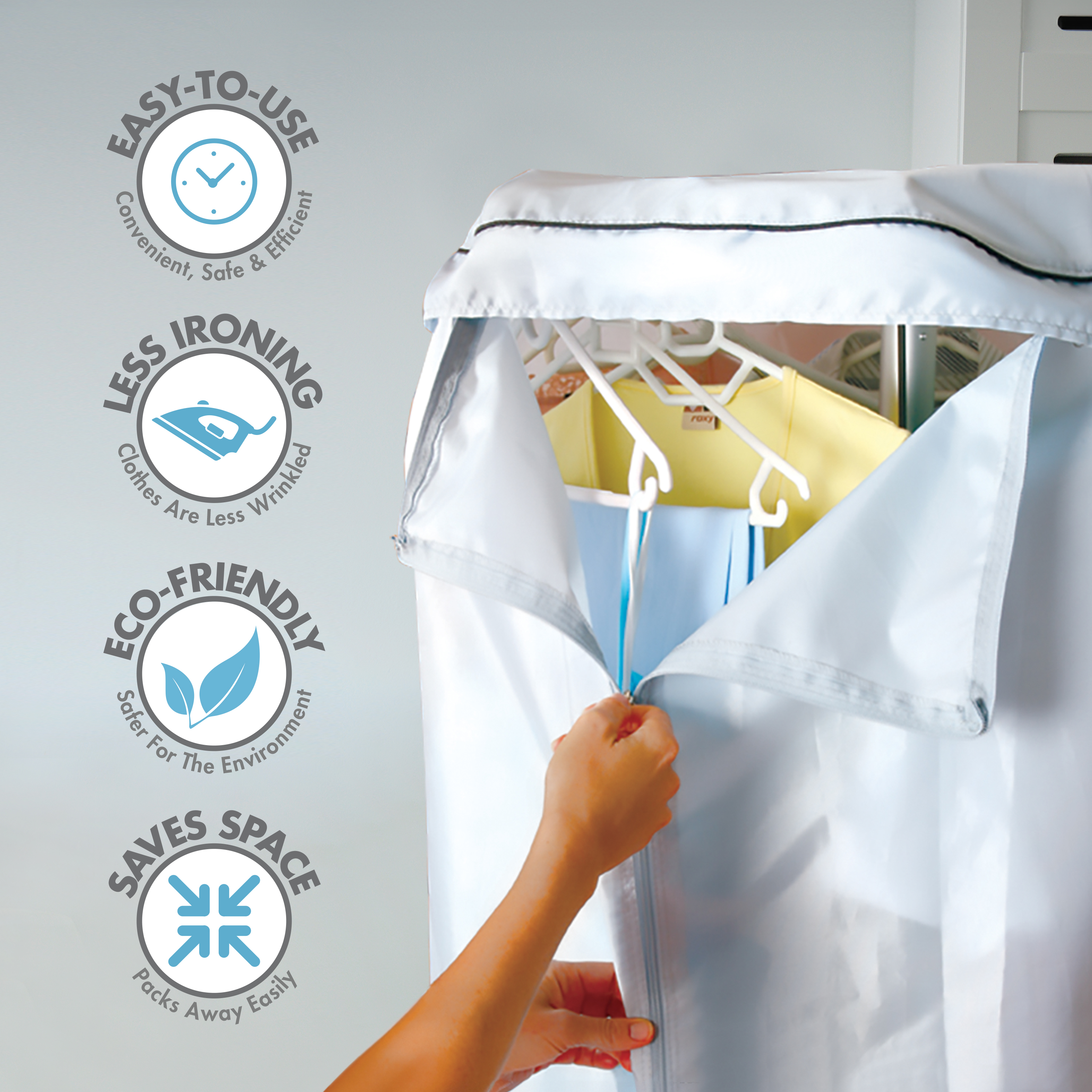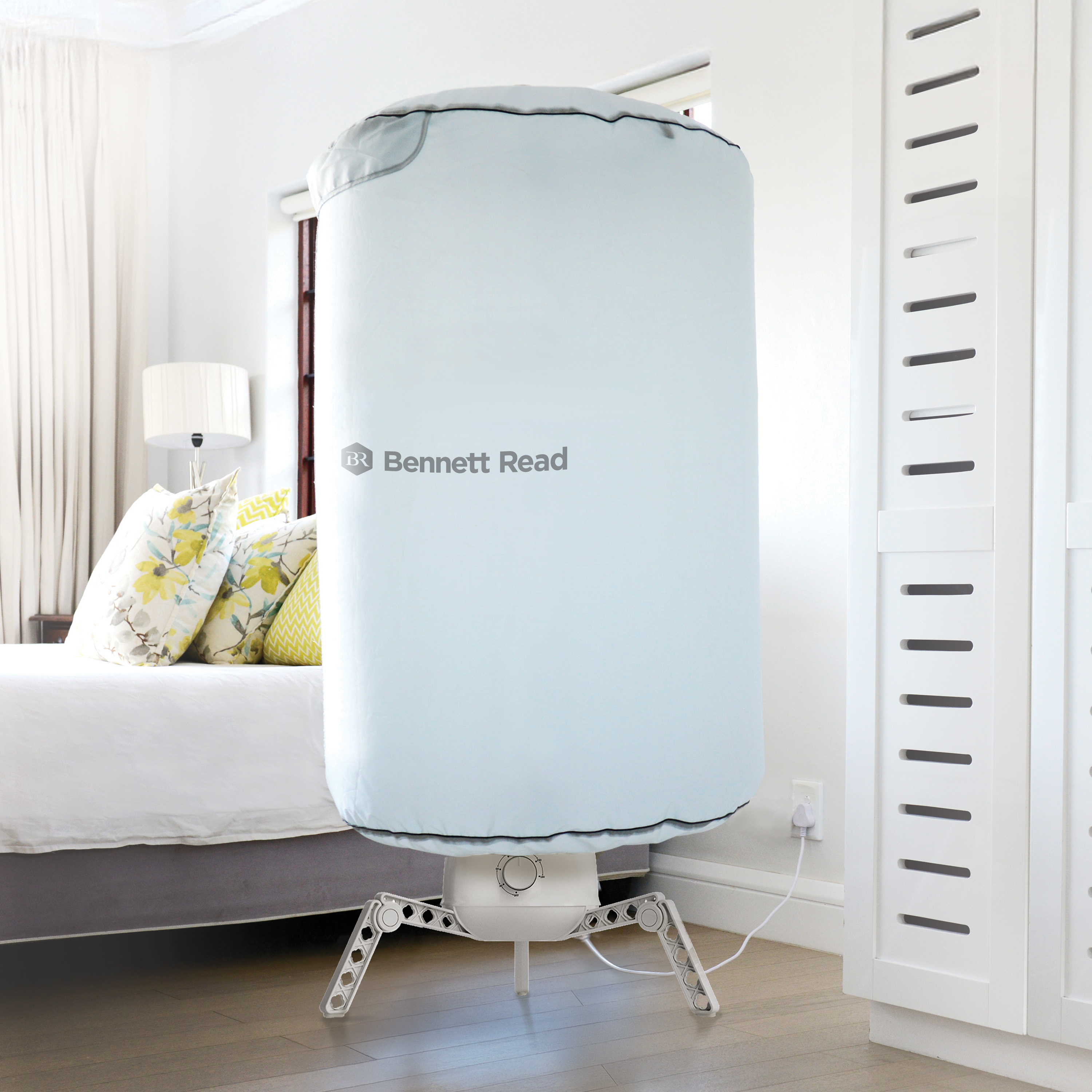 The extra-efficient, portable & convenient. Clothes drying system. Bennett Read 900w DriBuddi uses less electricity than a conventional tumble dryer* reducing harmful effects on the environment. Dry up to 10kg of damp clothing per load in 1 - 5 hours.** Won’t leave your clothes as wrinkled, saving you time on ironing. Dries many types of clothing that are unable to be dried in a tumble dryer.*** Safe and efficient. Simply hang your damp clothes, enclose with the zip-up cover and set the drying time. The easy-to-use timer makes it convenient, safe and efficient to use every day. Eco-friendly and versatile. The Bennett Read 900w DriBuddi is easy to fold up and transport making it ideal for caravanning and camping. Great as a regular. clothes horse and to hang clothes on while ironing. In winter, with the cocoon removed, it can also work perfectly as a quiet and effective room heater! Extended warranty. Your Bennett Read 900w DriBuddi comes standard with a 1 year warranty. Register your warranty online at www.bennettread.co.za/warranty & we’ll extend it to a full 2 years.