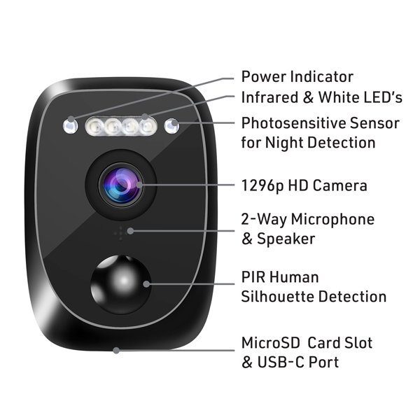 - Record & save short clips to a MicroSD card (not included) or utilise purchasable cloud storage