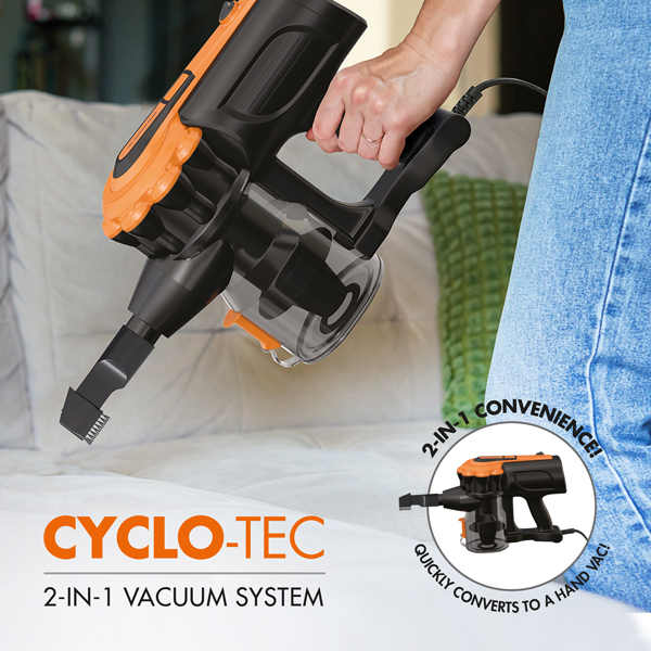 2-in-1 for ultra-convenient home cleaning! The agile home cleaning system that converts from an upright cleaner to a versatile hand vac in seconds! Ultra versatile. Use in upright mode with the steel metal extension wand & multi-surface nozzle for all round cleaning of carpets and hard floors. Convenient hand vac. Convert to the hand vac with a crevice nozzle and upholstery tool to easily vacuum furniture & hard to reach places. Full set of attachments! Including: a multi-surface floor nozzle, adjustable metal extension wand, combination crevice tool & dusting brush, upholstery tool, & wall-mount bracket. Extended guarantee. Your Bennett Read Cyclo-Tec comes standard with a 1 year guarantee. Register your guarantee online at www.bennettread.co.za/warranty & we’ll extend it to a full 2 years.