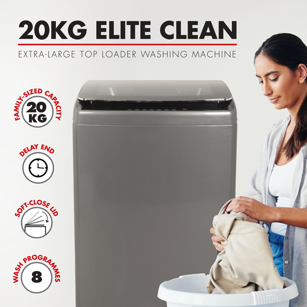 Massive capacity for effortlessly clean, fresher laundry for the whole family. Family-sized 20kg capacity. The Bennett Read® 20kg Elite Clean Top Loader Washing Machine boasts a family-sized 20kg capacity, making it perfect for large households. With 8 versatile wash programmes, it provides customised care for all types of laundry, ensuring that your clothes are always clean, soft & hygienically fresh! Sleek & modern design. Designed with a sleek & modern aesthetic, this washing machine is a stylish addition to any laundry room. The digital display screen, intuitive control panel & premium tempered glass soft-close lid combine style with practicality, offering both ease of use & durability. Convenience & safety. The Bennett Read® 20kg Elite Clean Top Loader Washing Machine is equipped with a delay end function, allowing you to set & forget your laundry. Additionally, the built-in memory resumes the cycle after a power outage, while the child lock feature & sturdy adjustable feet provide safety & stability. Warranty. Your Bennett Read® 20kg Elite Clean Top Loader Washing Machine comes with a 3 year warranty. We stand behind it with a knowledgeable, dedicated customer care department, so should you ever have a problem, you’ll receive fast, considerate assistance. Register your warranty online at www.bennettread.co.za/warranty.