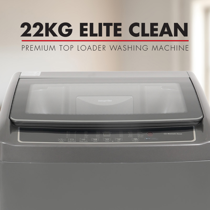 Built for big families. Designed with larger households in mind, the Bennett Read® 22kg Elite Clean Top Loader makes light work of bulky laundry items from bedding and towels, to full family-sized loads. Washing more in a single cycle helps save both time and effort, offering maximum convenience for busy lifestyles. Versatile washing options. Featuring a sleek digital display and user-friendly control panel, this appliance comes with 10 dedicated wash programmes designed to care for a wide range of fabrics and garments. Its hot and cold water inlets provide extra flexibility to suit your laundry preferences and ensure optimal results for every load. Modern design with practical features. The Bennett Read® 22kg Elite Clean Top Loader features a stylish soft-close tempered glass lid. The dark grey finish complemented with refined black accents adds a contemporary touch, while the sturdy feet ensure maximum stability for a smoother, quieter washing experience. Warranty. Your Bennett Read® 22kg Elite Clean Top Loader Washing Machine comes standard with a 3 year warranty. We stand behind it with a knowledgeable, dedicated Customer Care department, so should you ever have a problem, you’ll receive fast considerate assistance. Register your warranty online at www.bennettread.co.za/warranty.