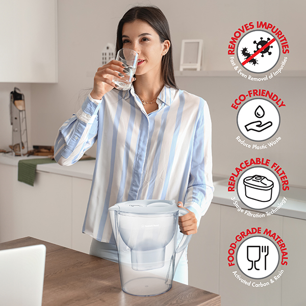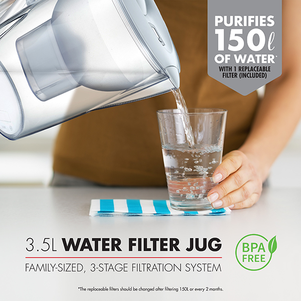 Effortlessly purify & enhance your family’s drinking water. Refreshingly pure peace of mind. Experience the Bennett Read® difference & savour water that's not just pure but simply exceptional. Say goodbye to impurities, & hello to healthier, better-tasting water with the family-sized Bennett Read® 3.5l water filter jug. Maximum convenience. Designed with families in mind, the Bennett Read® water filter jug features a flip-top lid & spill-proof seal, guaranteeing effortless refills, hassle-free pouring & ultimate convenience. Filter replacement indicator. Take the guesswork out of filter maintenance with the advanced digital reminder system, that monitors the filtration process in real-time, ensuring that you never miss a filter change! Safe & easy to clean. Crafted from BPA-free materials, the jug ensures the purity & safety of your water. Plus, the dishwasher-safe* components make clean-up a breeze! Unparalleled filtration. Features an advanced, easy-to-replace, 3-stage filtration system that removes sediment, organic matter, calcium, magnesium & residual chlorine, all while enhancing the overall taste of your water. Extended warranty. Your Bennett Read® 3.5l water filter jug comes standard with a 6 month warranty. Register your warranty here & we’ll extend it to a full 1 year.