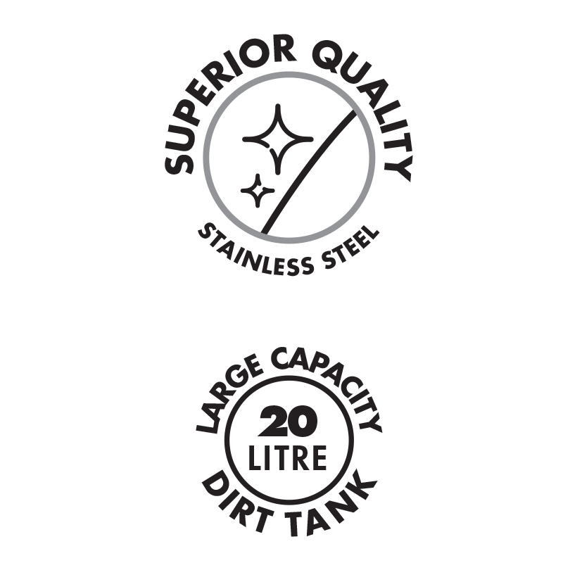 The premium stainless steel, large-volume cleaning solution that keeps your home neat & tidy! The Bennett Read Titan 20 is an all-around, wet & dry vacuum cleaner, designed with the ability to quickly convert from a dry floor vacuum to an efficient spill-slurper. It has a blower function too? Talk about ultimate convenience & versatility! With 1200W of power, a dual-stage filtration system & large 20-litre capacity, the Titan 20 vacuum cleaner gives you the ability to tackle almost any cleaning job around the home & workshop. The premium quality stainless steel dirt tank is rust-resistant & is exceptionally lightweight & compact for quick cleaning & convenient storage!